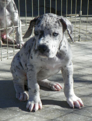 Hello! I'm the merle female, my name is Schatzi!